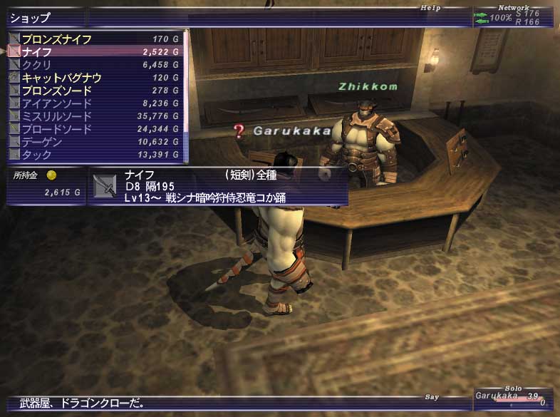でも競売だとLv13装備のナイフが相場7000ギルで、手がでません。