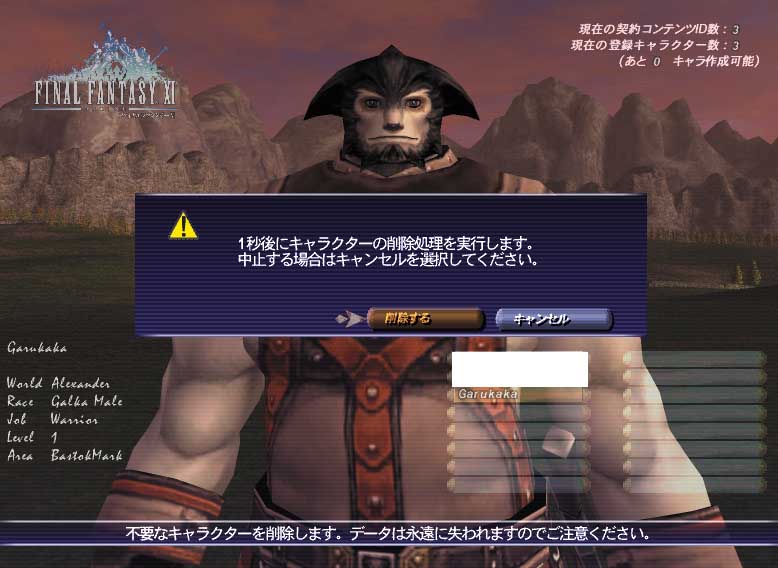 白魔導士Lv13 (アレクサンダー鯖)←フェイスを変えたいためアイテムを移して削除