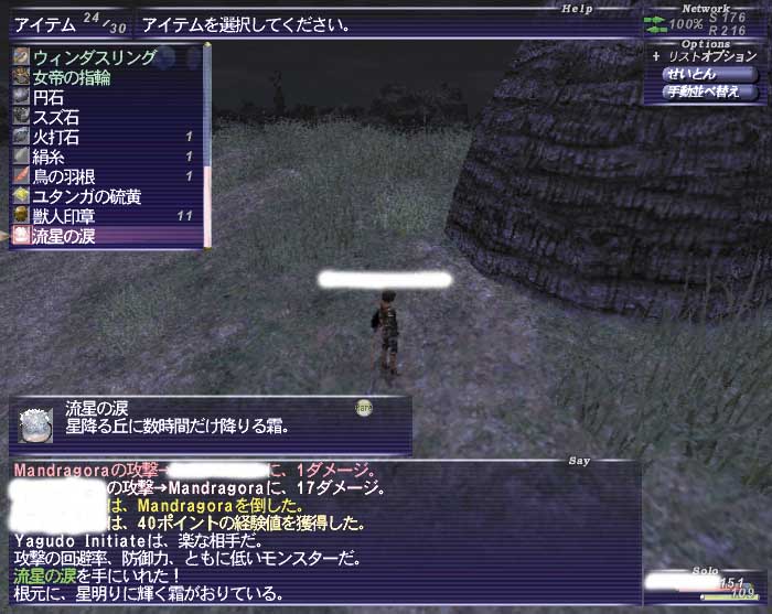 序盤のウィンクエストですが、マンドラゴラの落とすユタンガの硫黄、コルネットなどは
