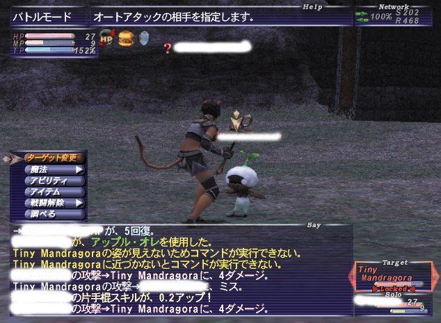 途中、街のそばのマンドラと必死に戦っているタルタルが居たので