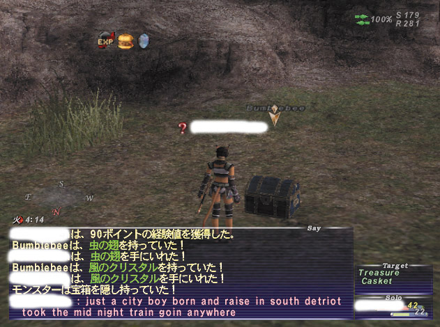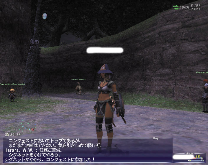 北門は競売に遠い欠点があるけど、門から広場に出て左の段差の下にいるタルタルが